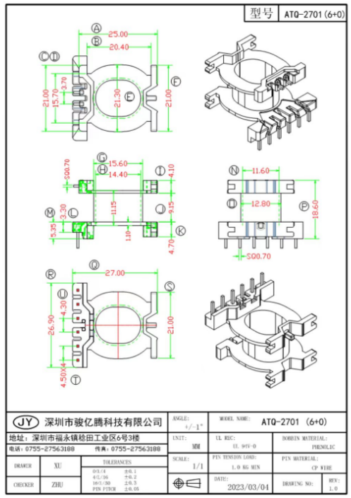 我司专业生产高频变压器骨架、外壳、塑胶制品及其精密模具设计与开发,欢迎来电洽谈!